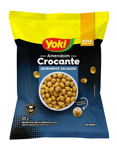A linha de snacks da Yoki oferece amendoins com grãos selecionados, que incluem o japonês, o crocante (nas versões Levemente Salgado, Sa.bor do Chef e Molho de Pimenta) e diferentes variações no tipo descascado.