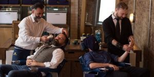 Estão em alta os cabeleireiros especializados em cuidados masculinos com espaços exclusivos e serviços diferenciados. Esses estabelecimentos oferecem pacotes que variam entre 5 e 8 horas e oferecem tratamentos específicos para a barba e cabelo, além de limpeza de pele profunda, depilação, manicure, serviços de alfaiataria, entre outros. Além de todos esses mimos, o noivo petisca, bebe vinho ou cervejas artesanais e joga fliperama ou videogames com a galera. Já existem até barbearias que contam com espaço especial para se ajeitar para o casamento.