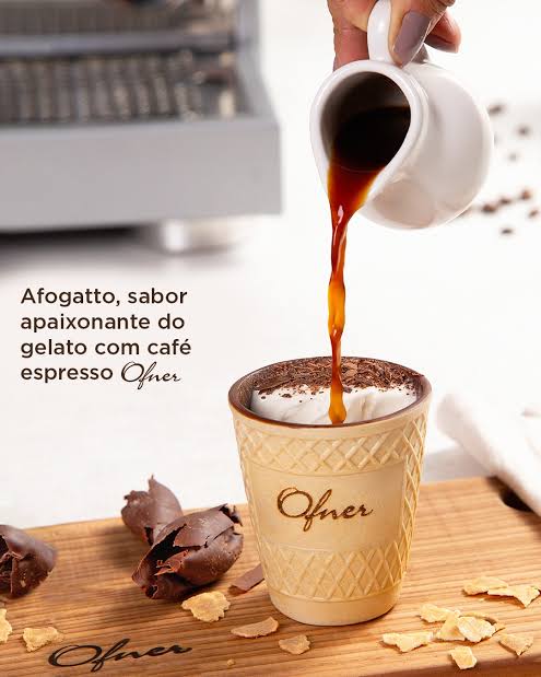 Como novidade em 2025, o Affogato traz uma experiência completa: servido em um copo de casquinha de gelato coberto com chocolate, é recheado com gelato à escolha do cliente e finalizado com raspas de chocolate, acompanhado de uma dose de espresso para finalizar com equilíbrio e intensidade.