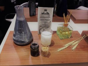 Estive nos estandes da Sweet Hair e fui atendida por uma senhora muito simpática chamada Herondina que me convenceu a ouvi-la para me explicar como funciona o The First – o primeiro shampoo que alisa, e os demais produtos da linha.