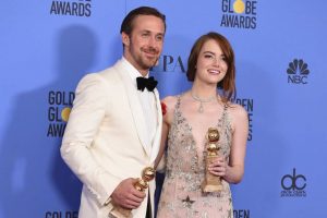 E falando sobre os ganhadores do Globo de Ouro de Melhor Ator e Atriz em Comédia ou Musical, Emma Stone e Ryan Gosling. É claro que o trabalho das duas estrelas tem recebido a atenção que tanto merecem, o desempenho foi, volto a dizer, impecável. Emma brilhou, e muito. Mostrou mais uma vez que tem capacidade e muito talento, dominou lindamente as cenas de dramas e fez um ótimo trabalho mesmo não sendo a primeira opção de Damien para interpretar a personagem. Quando ainda finalizava o roteiro, o diretor tinha em mente de trabalhar com outra Emma. Chazelle havia escrito a personagem com Emma Whatson em seus pensamentos, chegou a convidar a atriz, mas a eterna Hermione acabou recusando porque havia acabado de fechar contrato com a Disney para estrelar A Bela e a Fera, as gravações seriam na mesma época, dando então a personagem diretamente à Stone, que soube fazer muito bem o trabalho. Confesso que a química de Emma com Ryan não chega nem perto da química com Andrew Garfield, contudo, o casal em La La Land rouba suspiros.