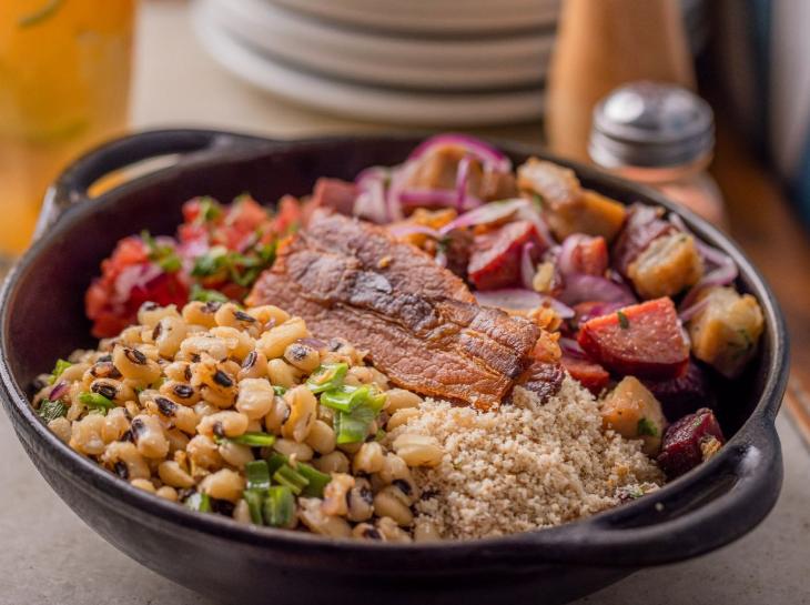 Localizado no coração do Centro, aos pés do Copan, o Orfeu é uma ótima opção para curtir o verão em São Paulo unindo a gastronomia brasileira contemporânea e a coquetelaria criativa em um ambiente descontraído e acolhedor. No cardápio, vale destacar o Arrumadinho, que reúne paio, carne seca, costelinha, linguiça, lombo e feijão fradinho, acompanhado de farofa e vinagrete, além do Baião de Dois Vegetariano, preparado com arroz, feijão, caponata de berinjela, mix de pimentões, queijo coalho e ovo, opções que representam bem a identidade da casa.